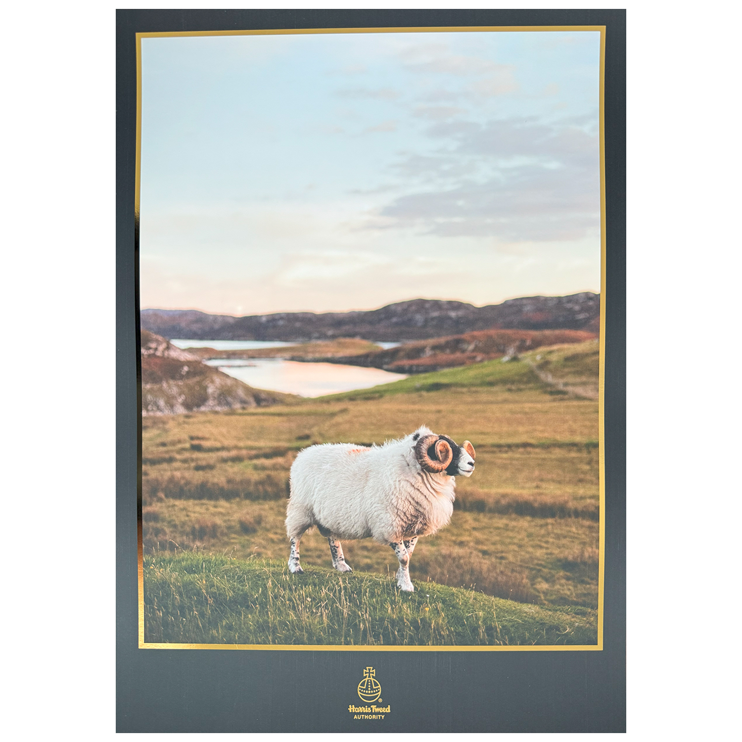 A beautiful image from the Outer Hebrides of Scotland, with a gold foil finish on the Harris Tweed® Orb and surrounding border.